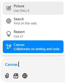 תלחצו על הסימון של התיקייה ובחרו בפקודה "canvas" פירושה הוא בד ציור משותף שלכם ושל הבינה ביחד.