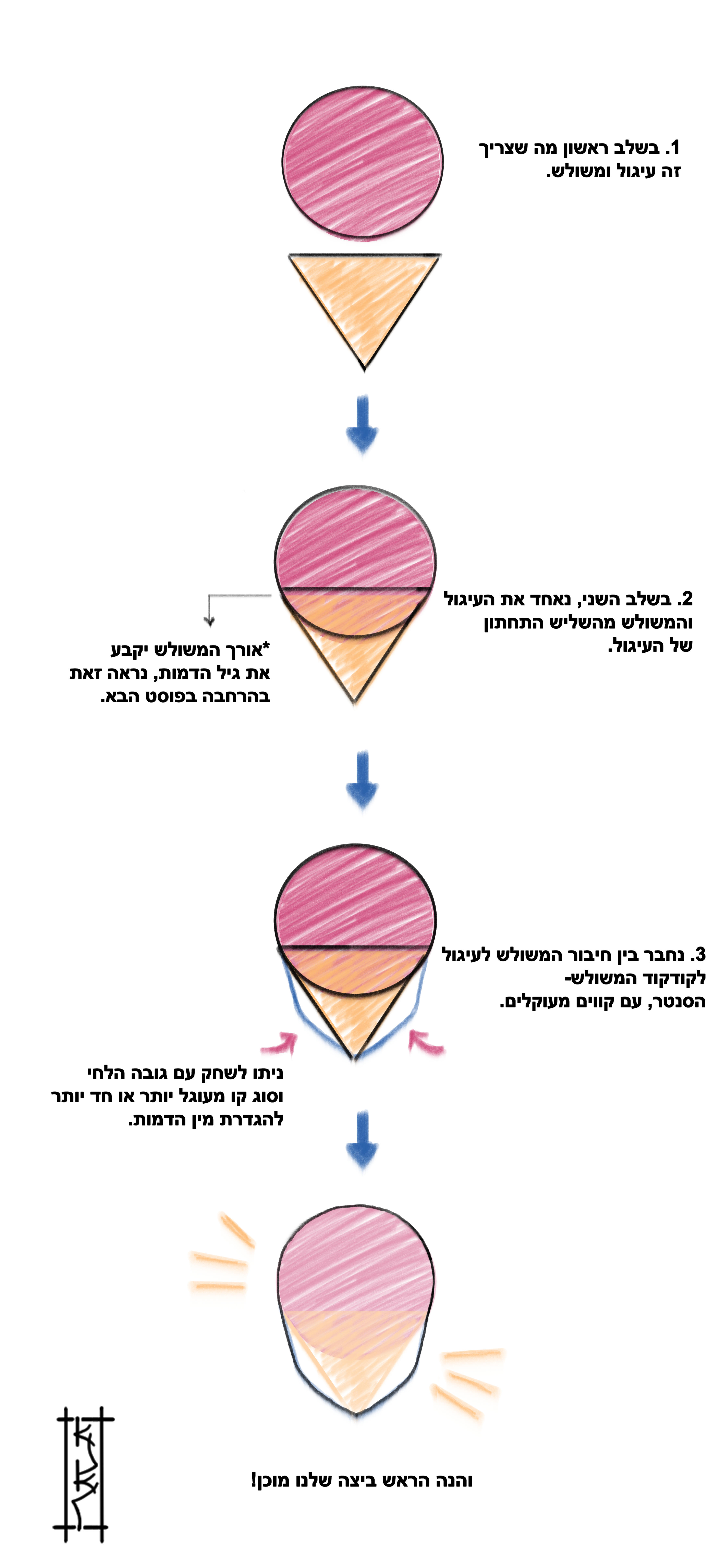 אלא לומדים קודם את היסודות של צורת הגוף והראש,