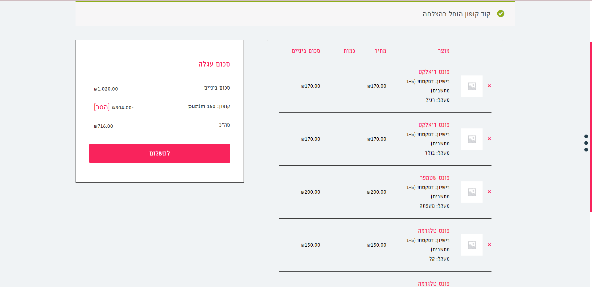 את צריכה לבחור את חבילת המשפחה ולא משקלים בודדים בפונטים שאת רוצה.