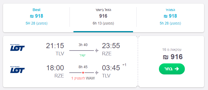 טיסות זולות למקומות שונים - בבין הזמנים: