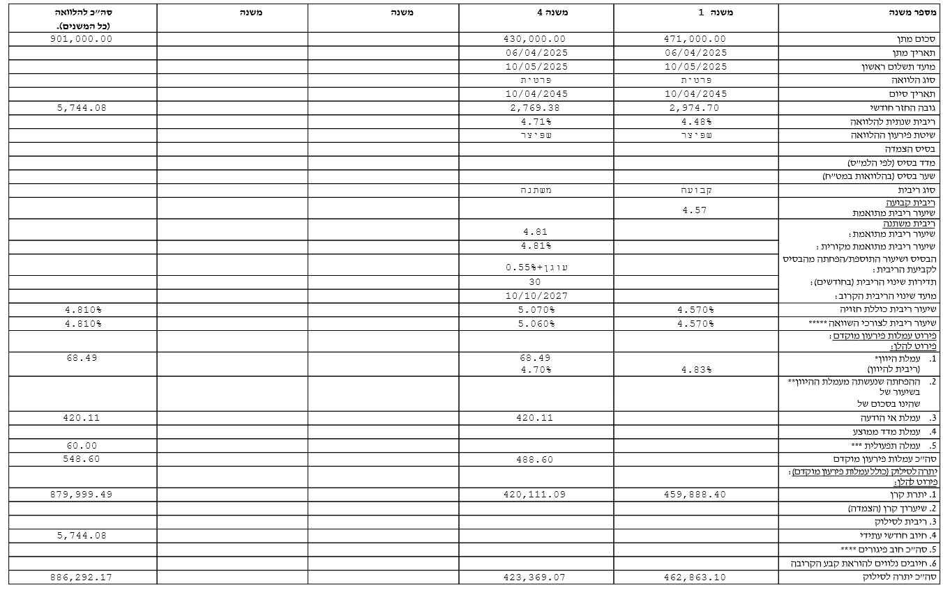 - סטטוס נוכחי: בוצעו משיכות בסך 901,000 ש"ח (לטובת הקדמת תשלומים לקבלן וחיסכון במדד תשומות הבנייה).