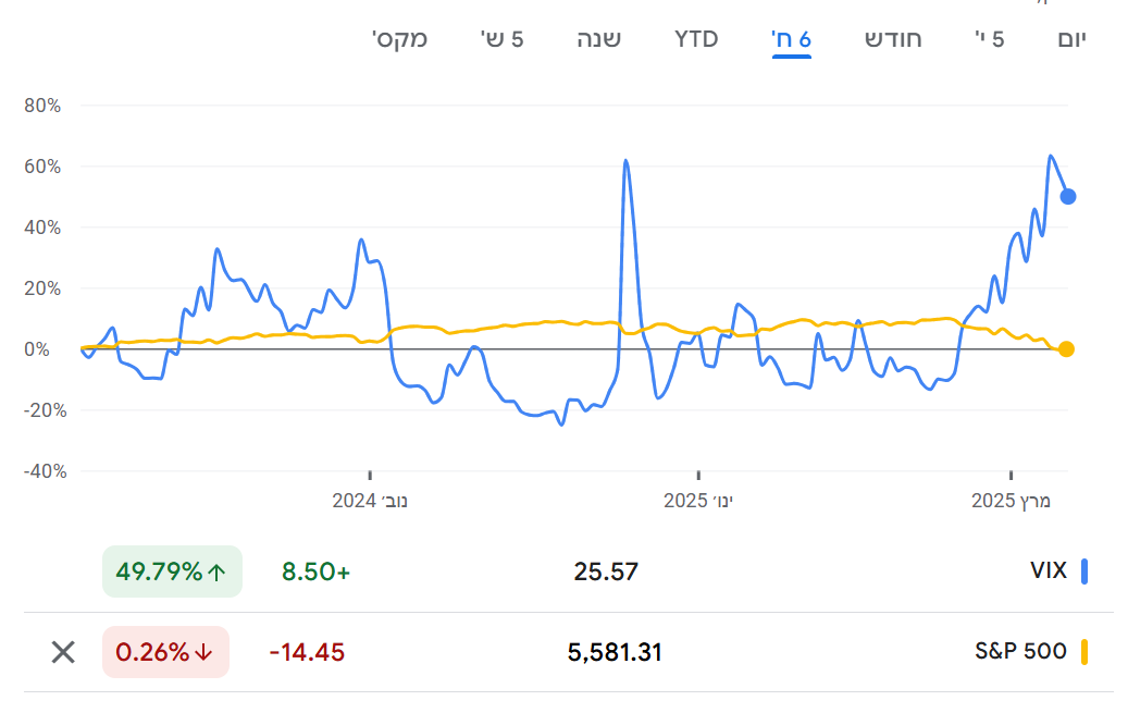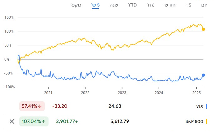 אבל שימו לב שזה כלל לא רלוונטי להשוות בין מדד VIX ל S&P 500.