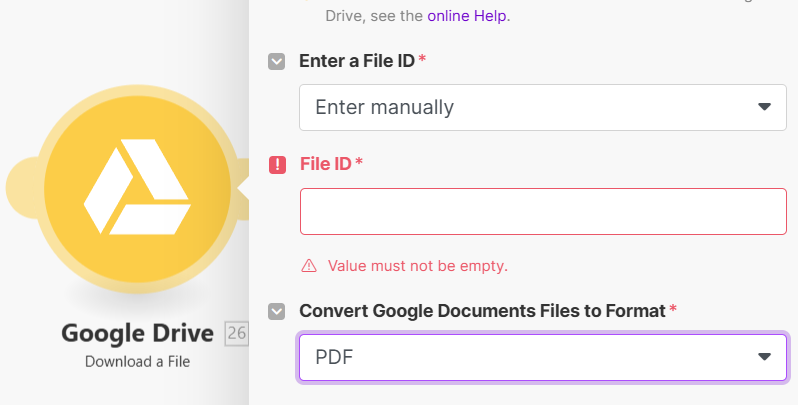 יש מודול של גוגל דוקס> הורדת קובץ