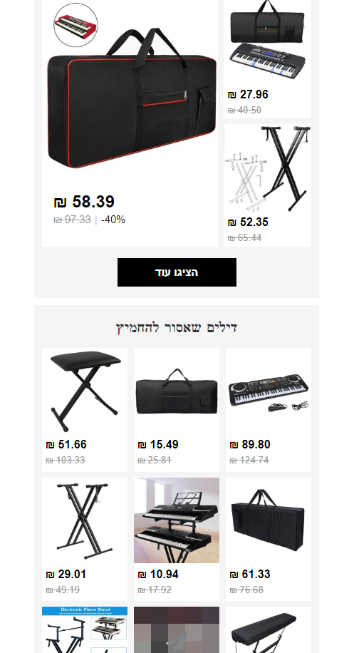 על אותם מוצרים במחירים זולים יותר לדוג':