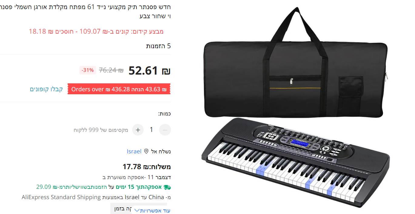 מחיר מפולפל בתוספת דמי משלוח גבוהים