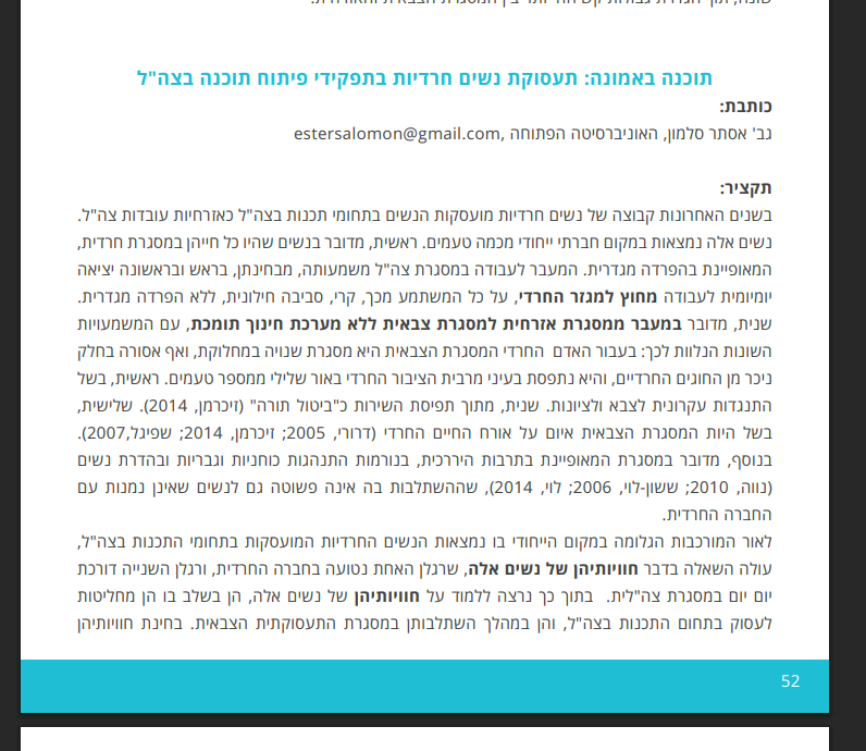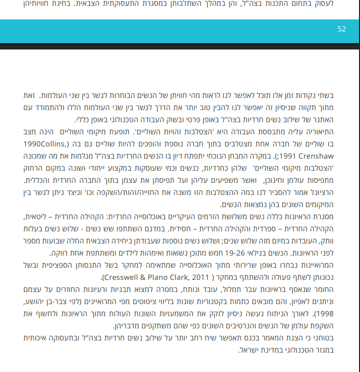 "מדובר במסגרת המאופיינת בתרבות היררכית, בנורמות התנהגות כוחניות וגבריות ובהדרת נשים שההשתלבות בה אינה פשוטה גם לנשים שאינן נמנות עםהחברה החרדית"