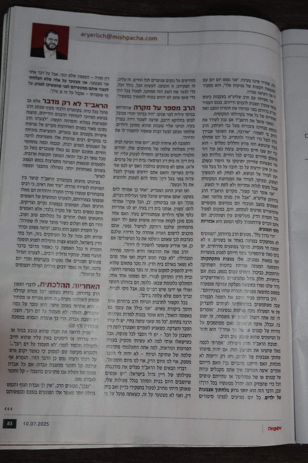 מחפשת בדחיפות את הטור של אריה ארליך של שבוע שעבר ממשפחה