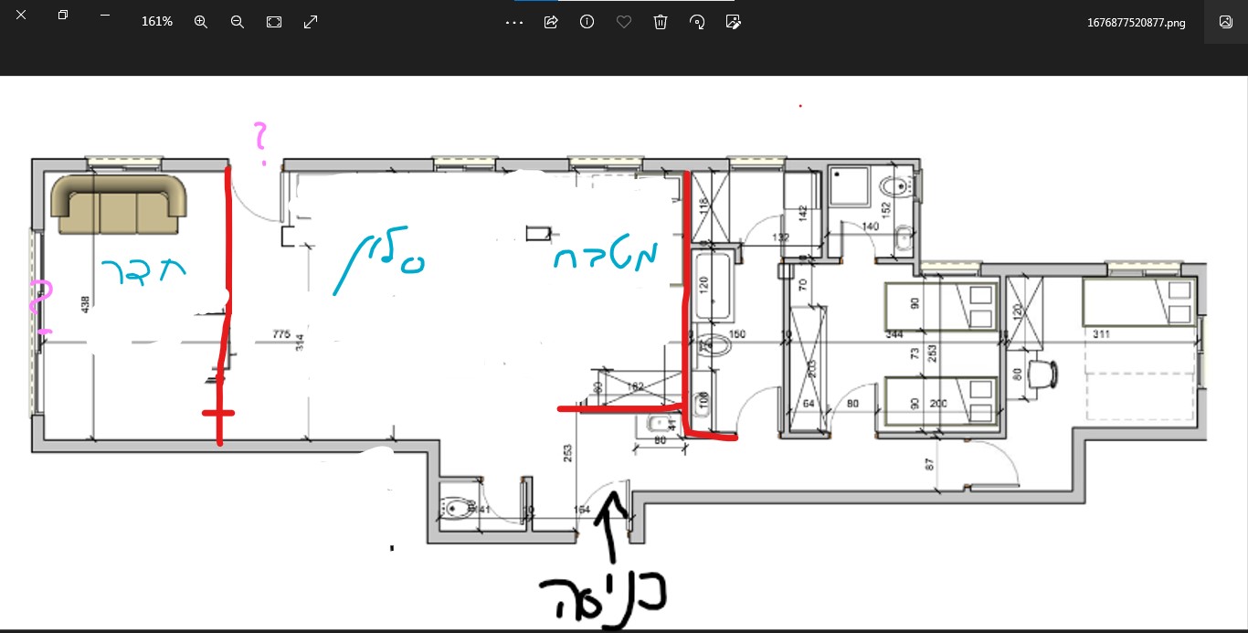 ועוד, משהו, לגבי היציאות שיש בתכנית, צריך להתחשב בהן, (סימנתי אותם בתכנית הקודמת בסמני שאלה)