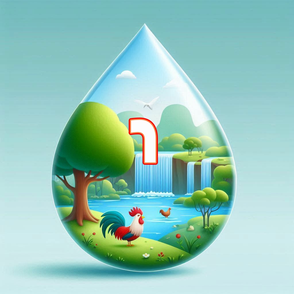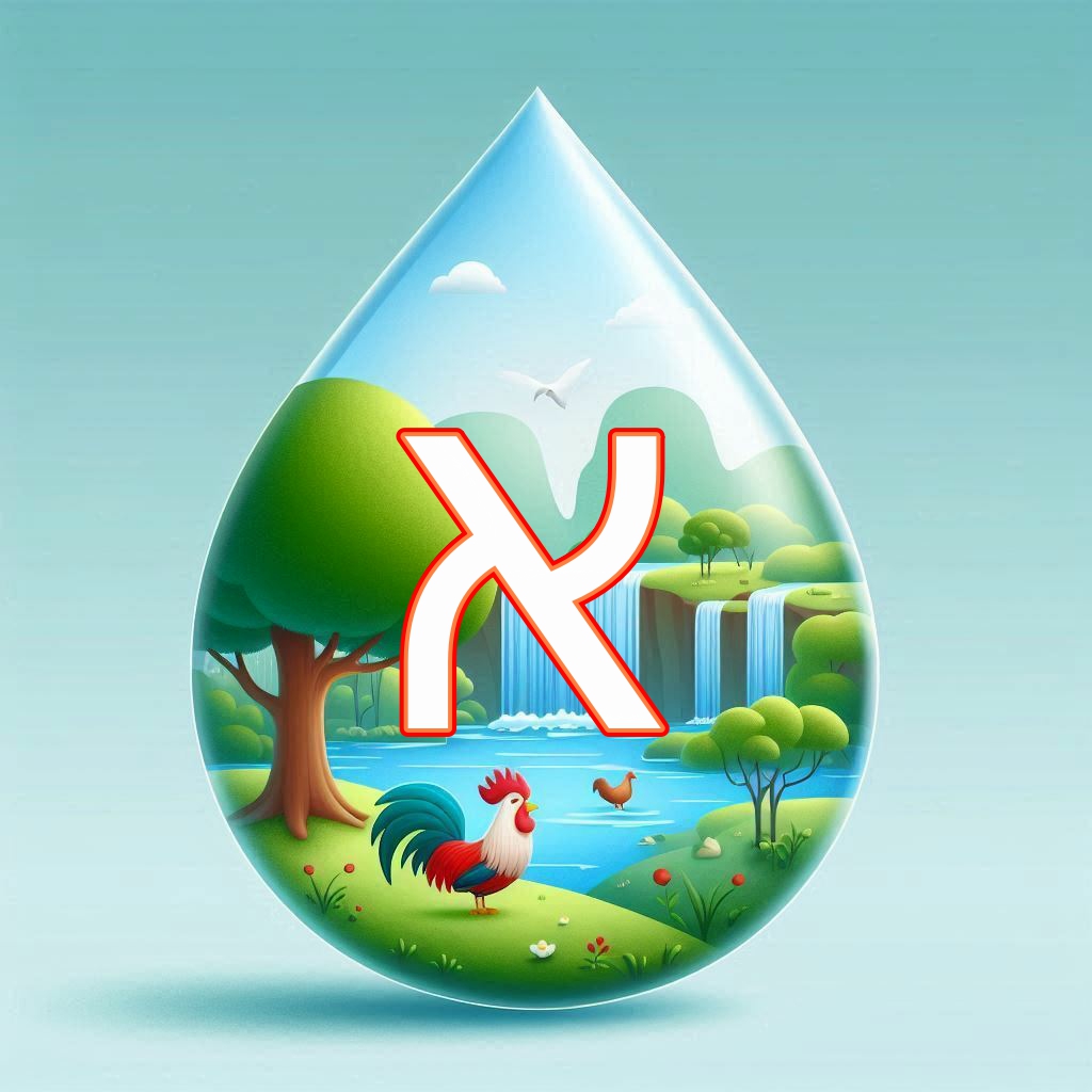 אותיות א' ב' מעוצבות בצורת טיפות. אותיות א-י