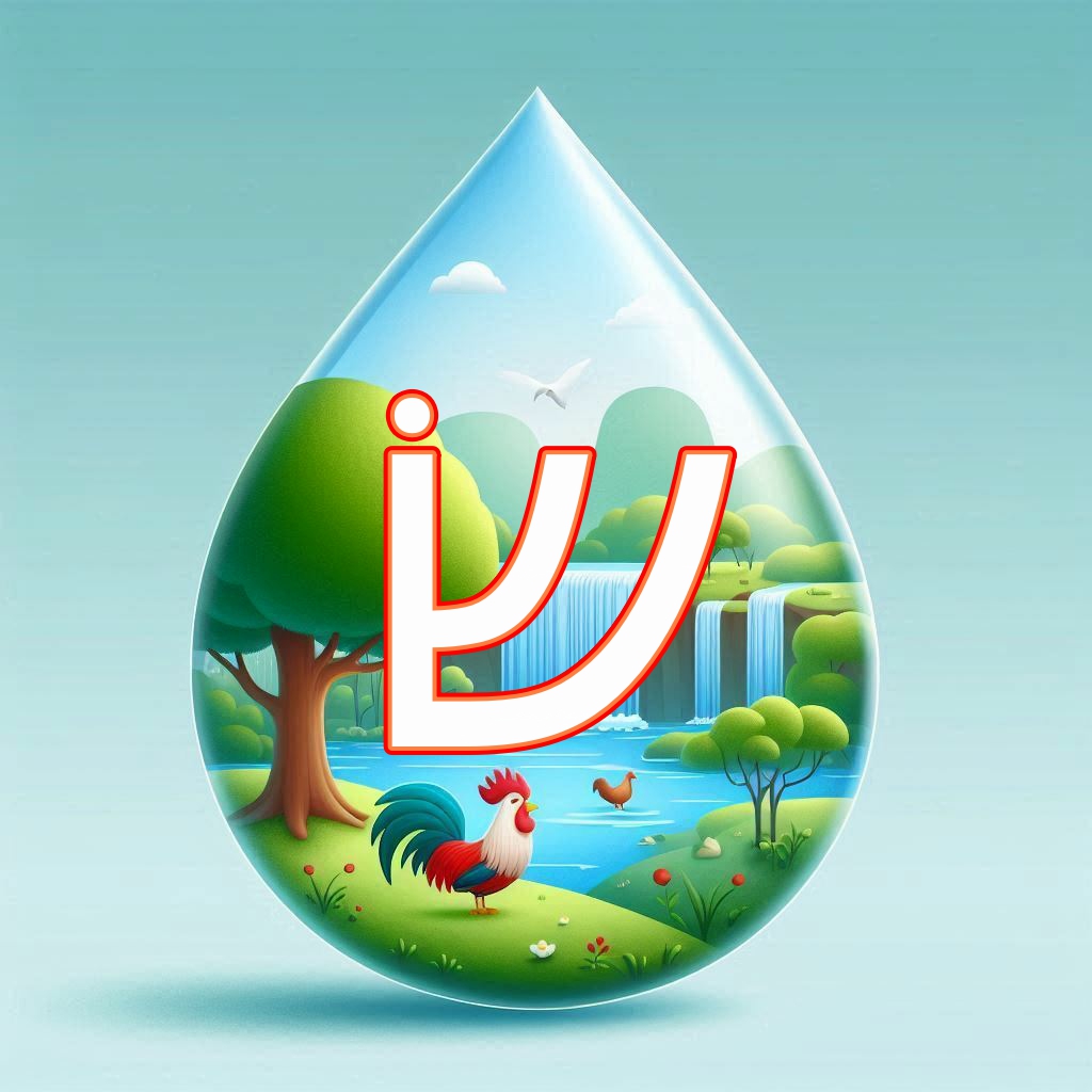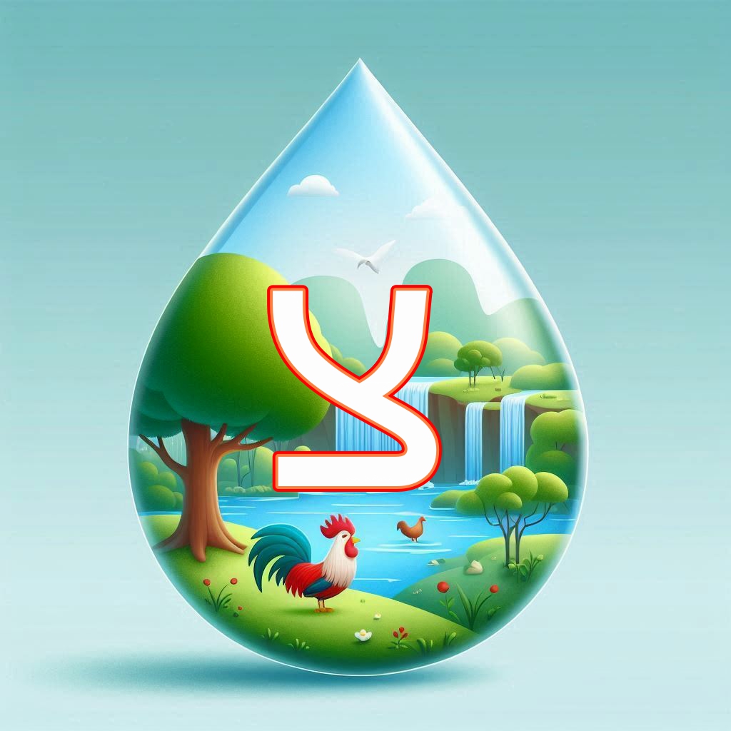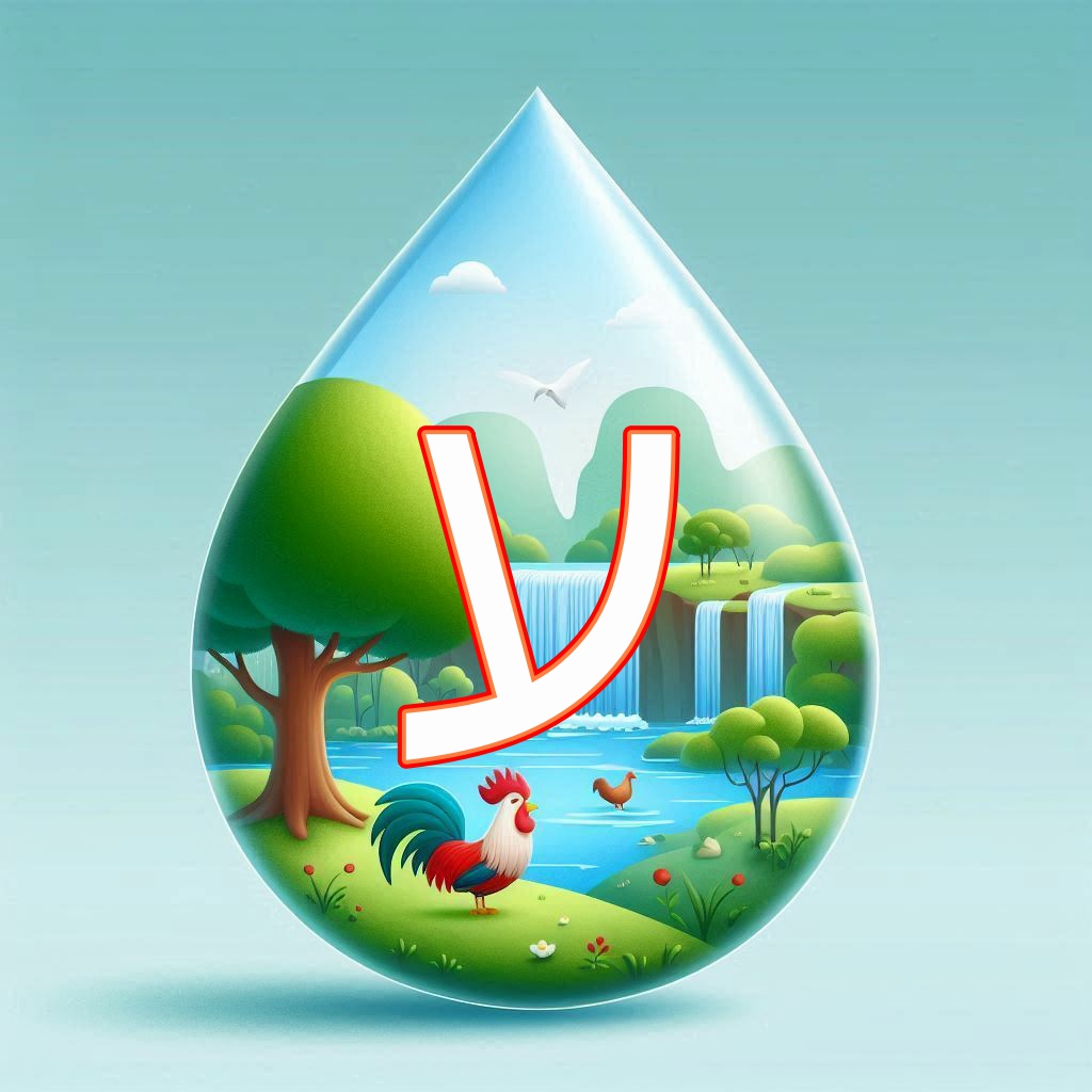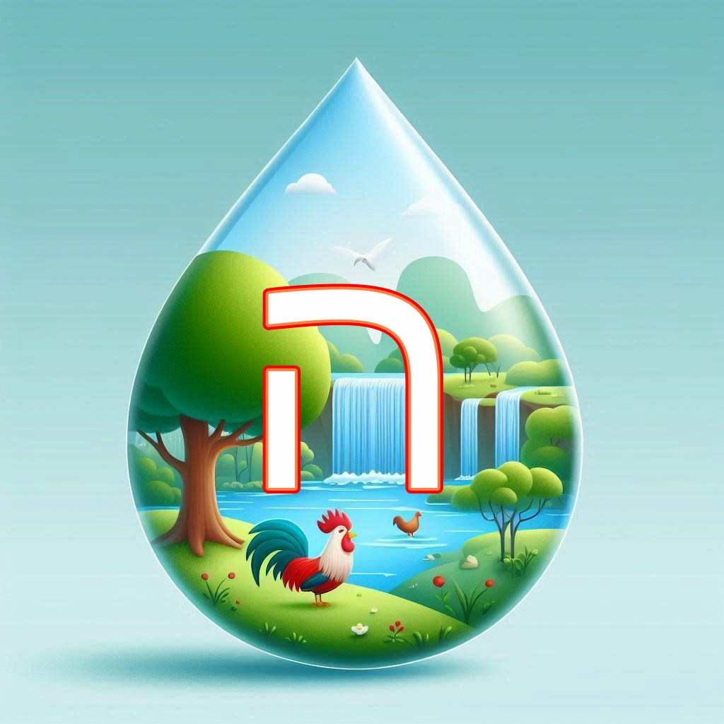 אותיות א' ב' מעוצבות בצורת טיפות. אותיות כ-ף