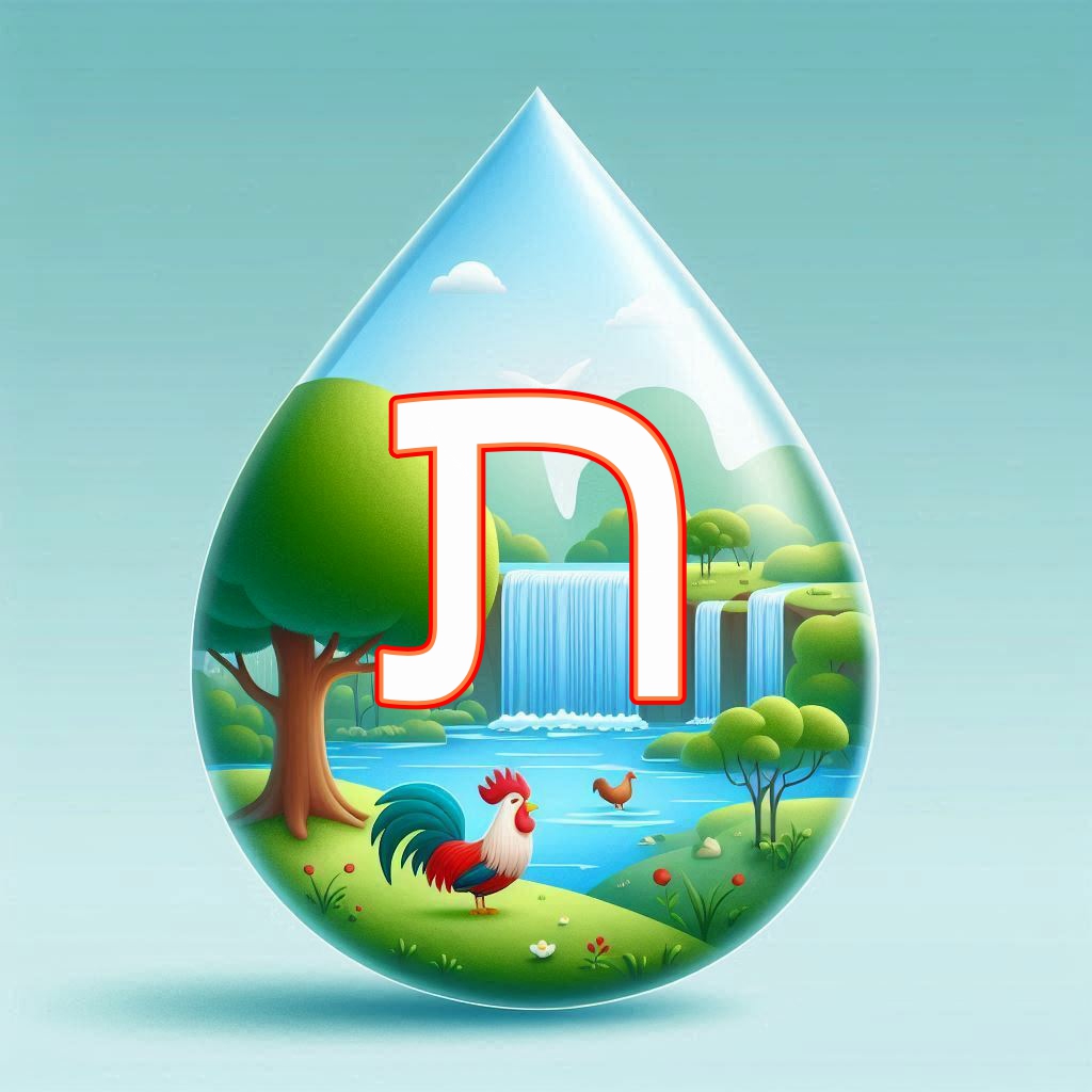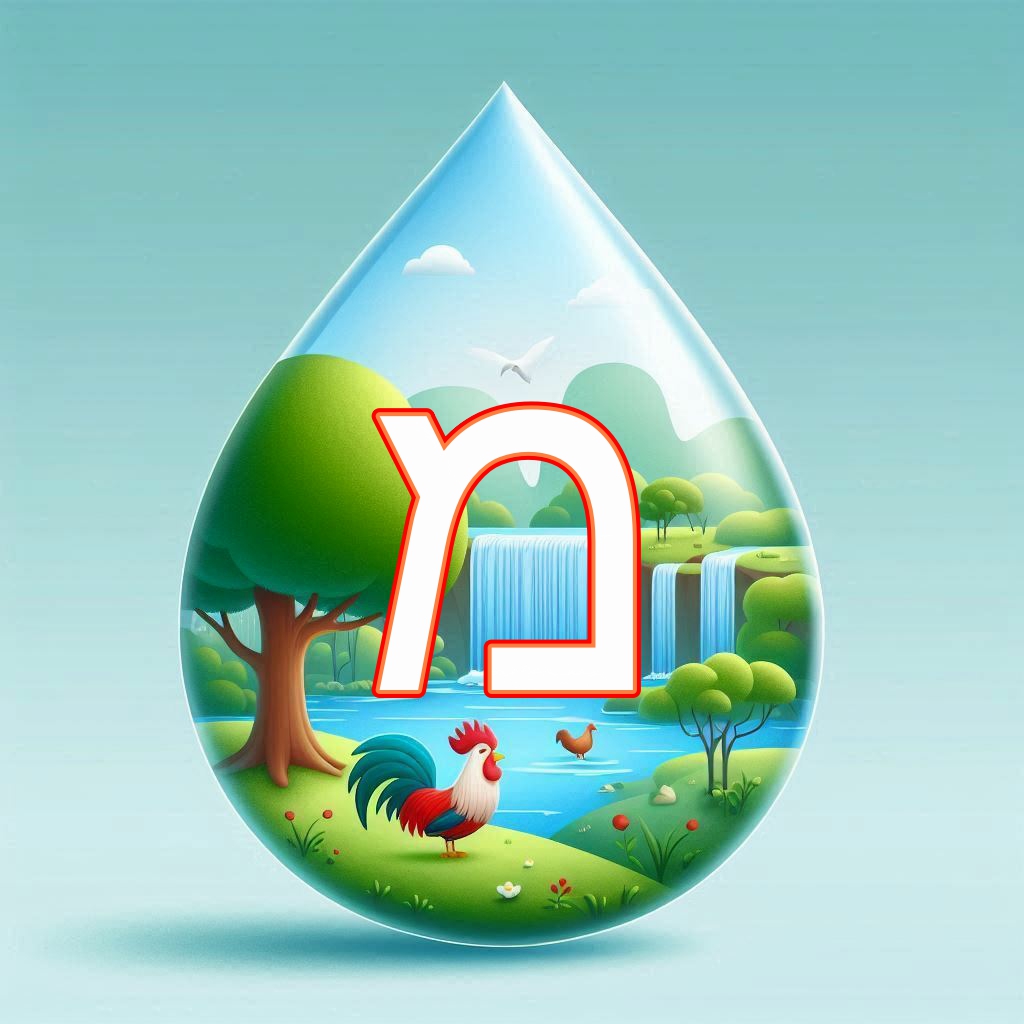 אותיות א' ב' מעוצבות בצורת טיפות. אותיות פ-ת