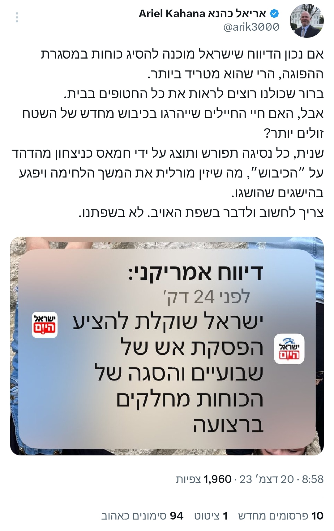 זה חלק משטיפת המח של ”משפחות החטופים ” שחייבים כמה שיותר מהר ובכל מחיר.מה שבטוח, ככל שהתקשורת פחות תתעסק בזה יהיה יותר טוב.
