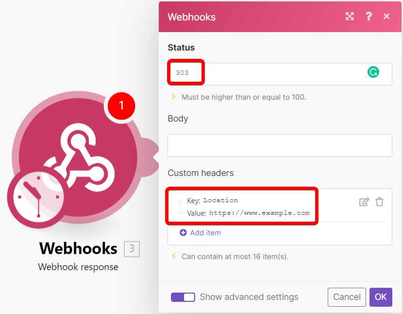 נאלצתי אם כן להגדיר את הרידיירקט כך: 301/307 ובBody הData (של הhtml)