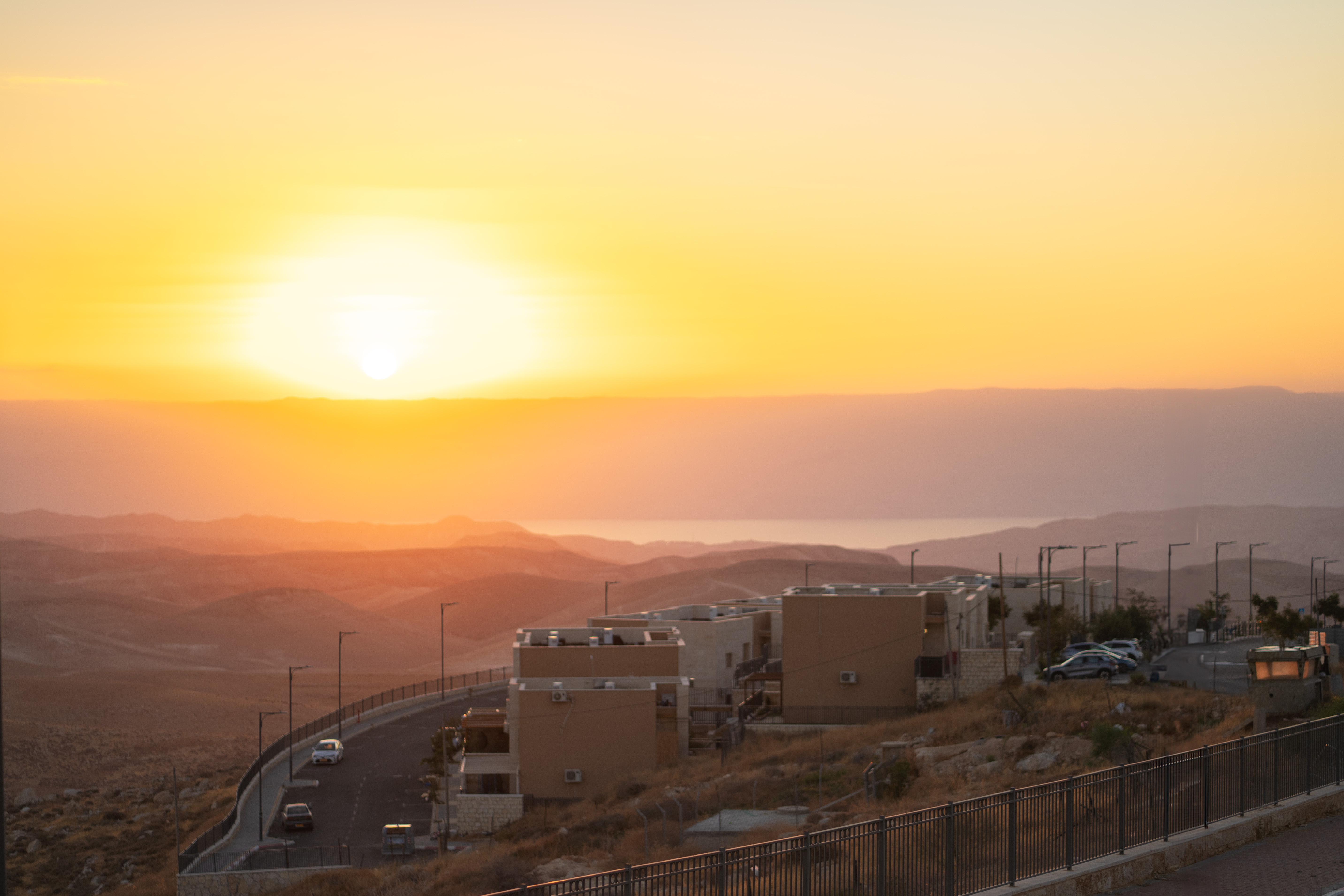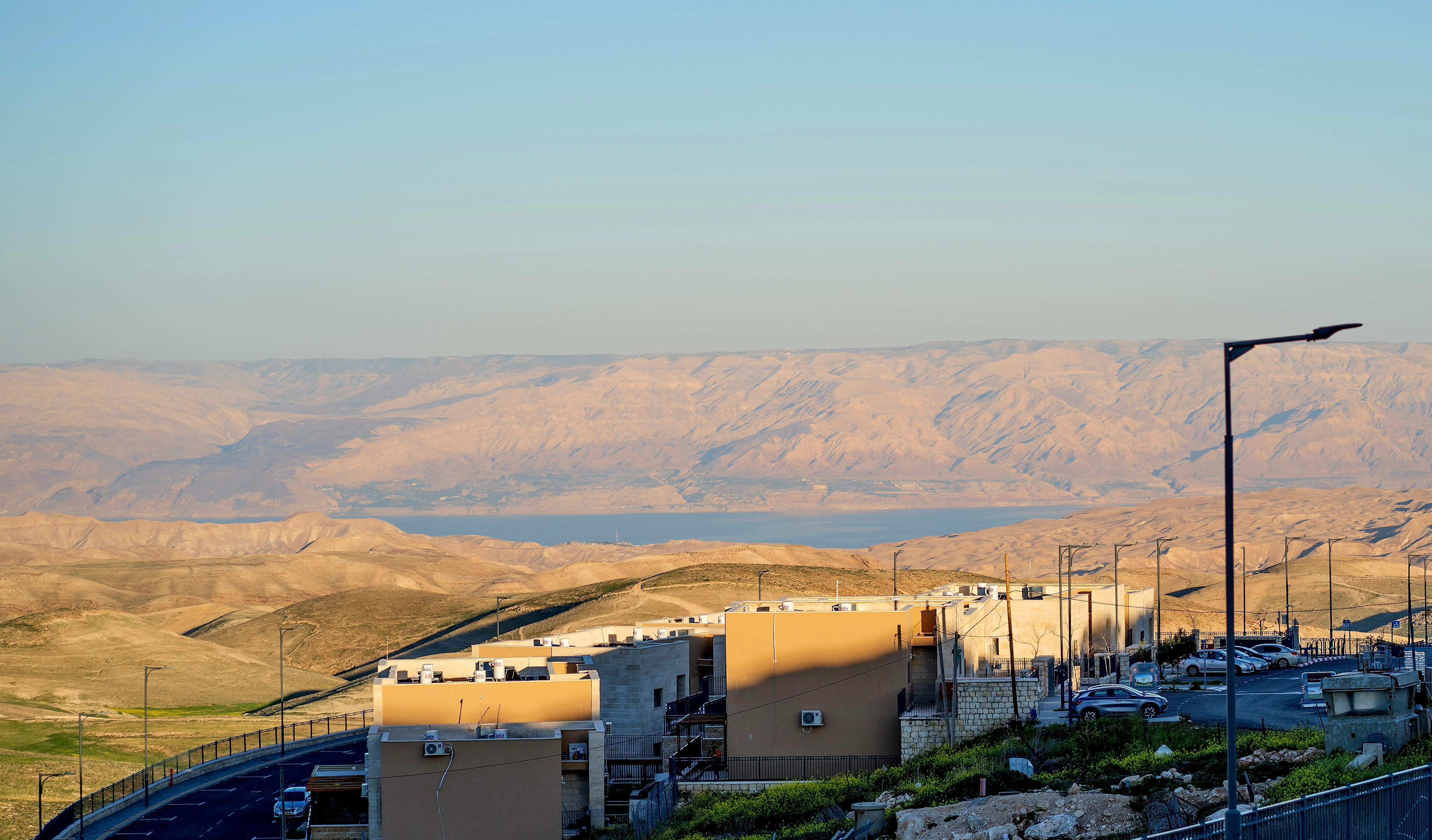 על דרך חתחתים מתפתלת בין גבעות החול והטרשים של מזרח הרי יהודה נצבת ההתנחלות החרדית מעלה עמוס.