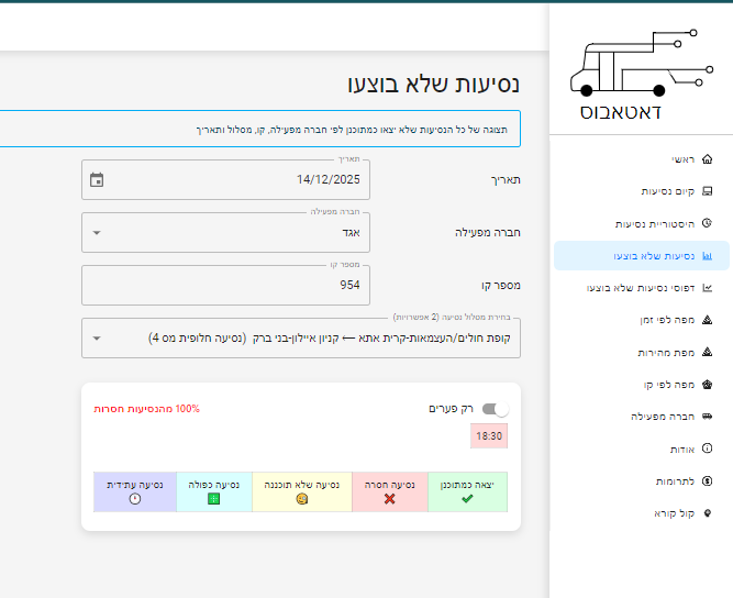 הנדון: שיבושי תנועה קו 954 תאריך 14/12/2025