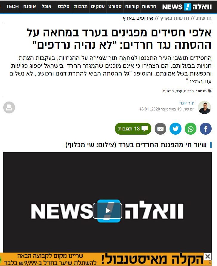 הפגנה היום בערד על ביזוי והסתה של הציבור החרדי תוך הקפדה על כל כללי הריחוק.
