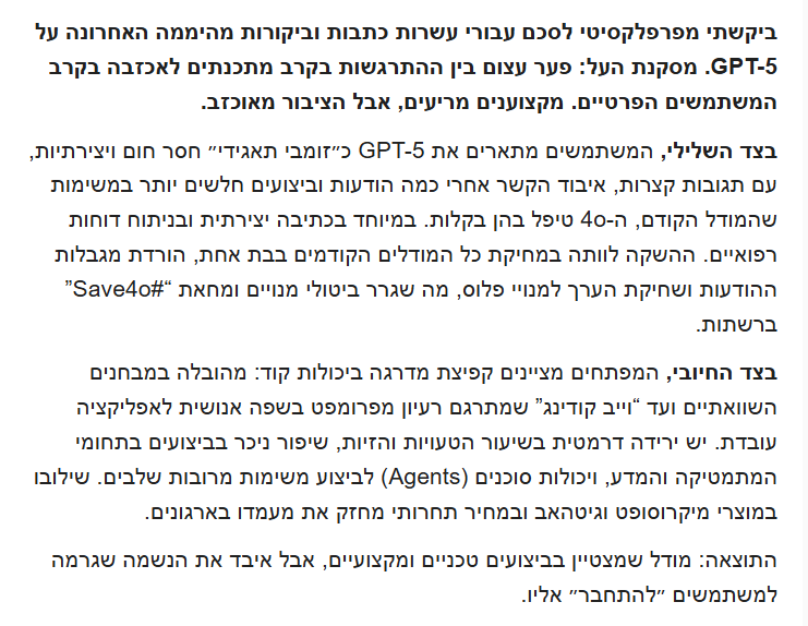 מתרגש להכריז שקיבלתי את העדכון של gpt 5